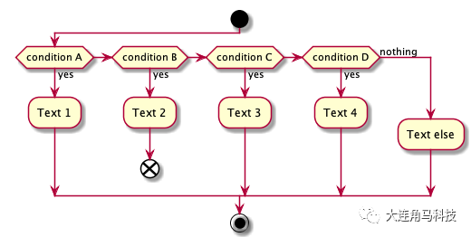 elseif (condition D) then (yes)