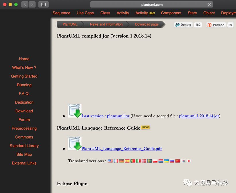 plantUML的官方网址提供了我们需要的所有资料。大家可以看看官网的样子。