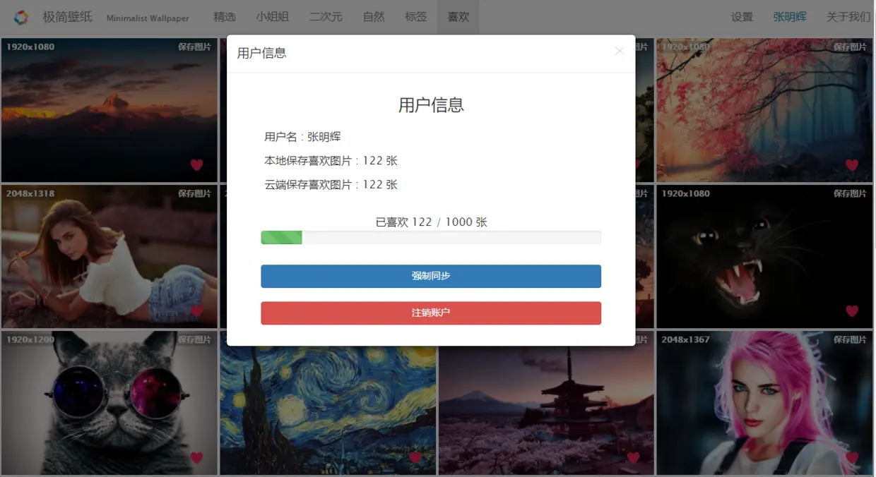 喜欢:每张图片右下角都有一个红心,点击红心"喜欢"该图片,所有喜欢的图片默认保存在浏览器本地,登录后可与云端同步。