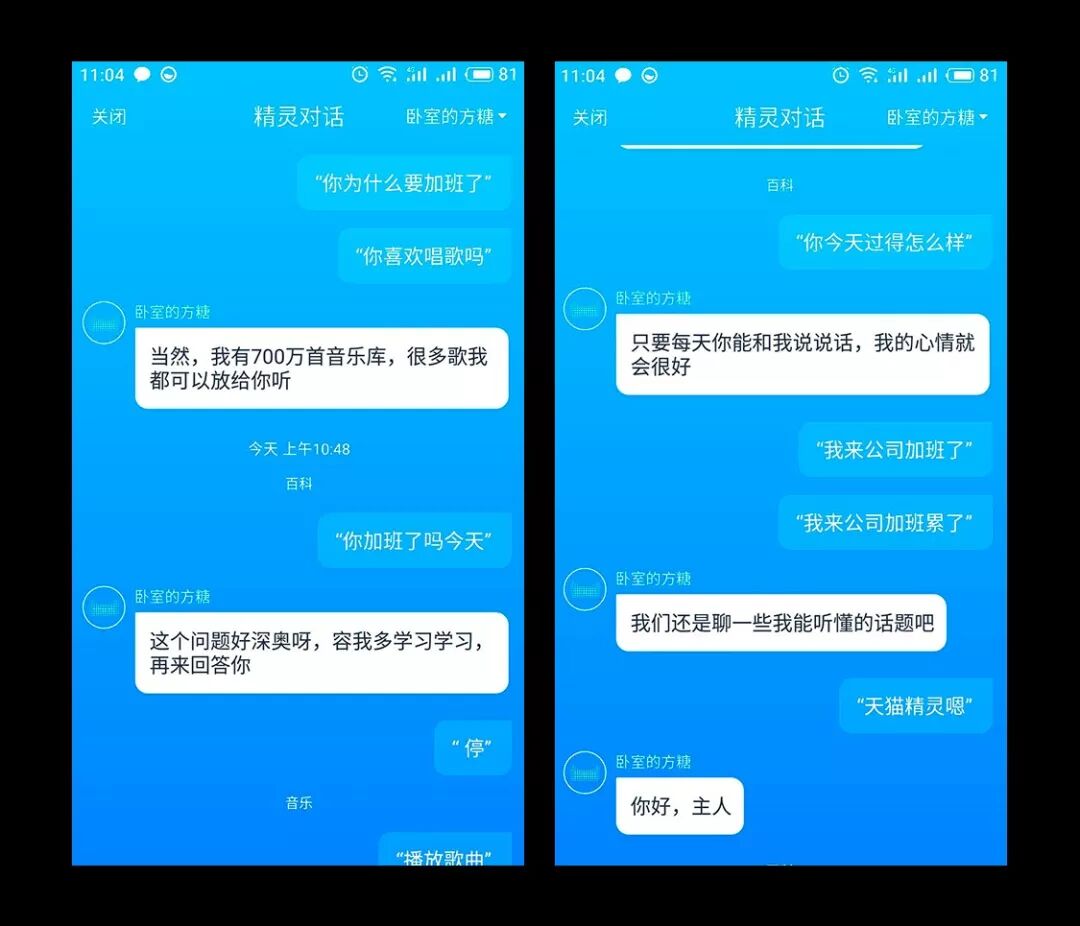 对于目前的天猫精灵场景话术包的处理,模拟真实场景只能说是差强人意,激发交互好奇和触发用户情感,则任重道远。