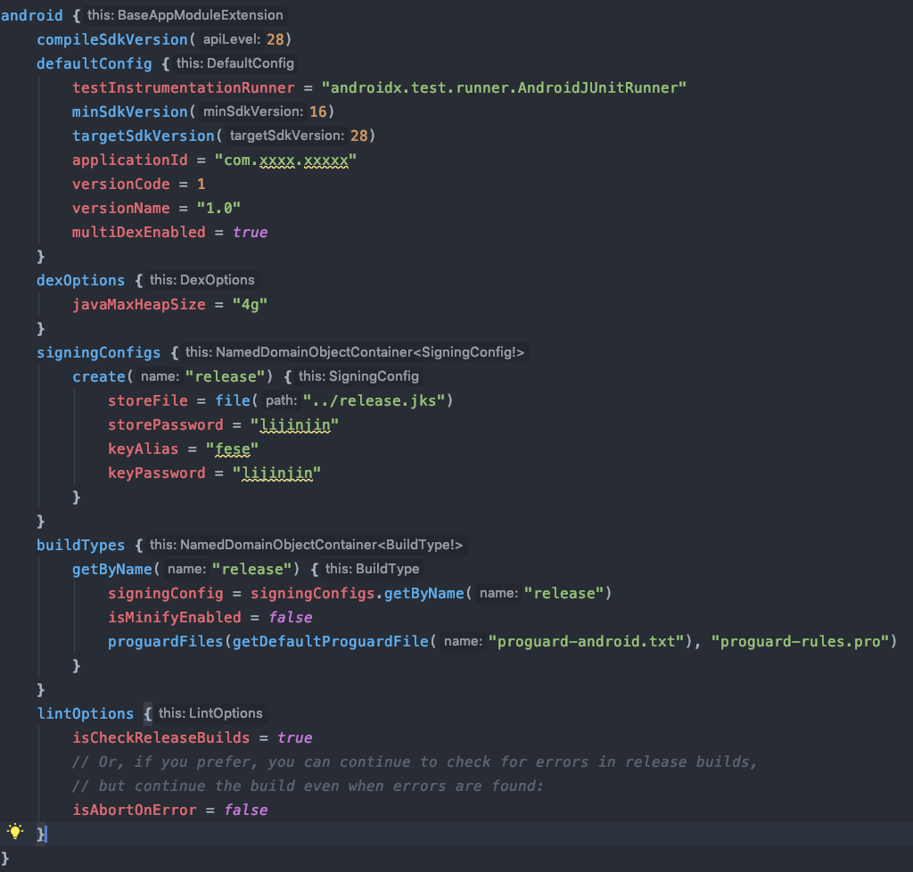WX20190129-143936.png 但是 release不是,release其实是自己创建的(上图有), 其原因是因为debug是android构建插件自带的配置,而release不是,它其实属于我们自定义的,所以我们之前那种纯 groovy 的语法写的时候因为太过于自由,没有认真读过插件文档的同学(比如我),改的时候就会一头包.同理可得buildTypes块,中间的配置也是通过getByName或者create来获取覆盖配置或者创建自己的配置 - 项目中我在实际编码中用到了