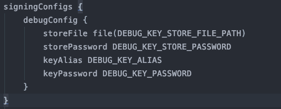 android配置中的signingConfigs配置,自带的debug配置,就是这一块