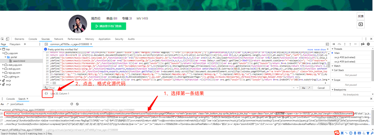 未格式化的代码可读性是很差的,看了也基本懵逼。现在,在格式化的代码中搜索:jsonCallback