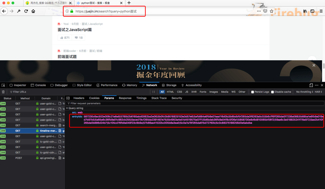 分析下图中,参数 entryIds 是怎么来的?(这个参数要翻页之后,才会出现)