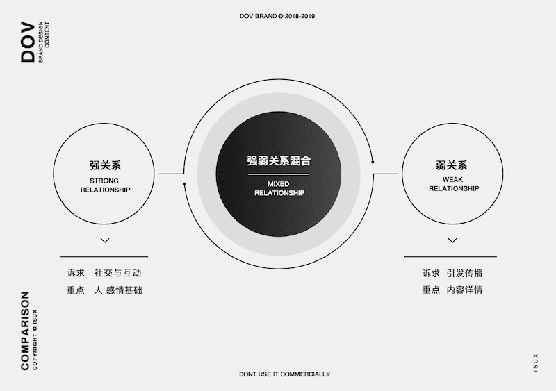 关系,决定了人与人之间产生交互;场景,决定了人与人之间产生什么样行为。具体的社交行为,是关系和场景这两个要素的叠加。为尝试解决现有的社交困境,DOV定位于“强关系”这一明确的关系链,清晰分隔混合的社交环境,聚焦于核心的密友社交场景,探索搭建合适的APP,为用户提供新的社交帮助。