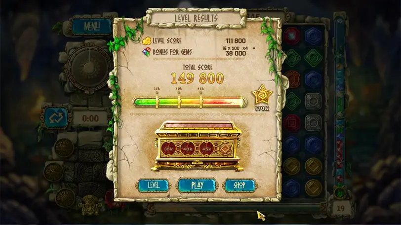 然而真正刷新我对消除游戏认知的是高中时期玩的《蒙特祖玛的宝藏3》 ,也是对我影响最深的一款消除类游戏,以至于现在还是会时不时玩几把消遣,虽然现在看这款游戏显得有些过时老派并具有一定的时代性,但值得肯定的是这款游戏的设计还是很成熟的,用现在所学知识进行剖析,我认为这款游戏具备以下出彩的点:(主观排名)