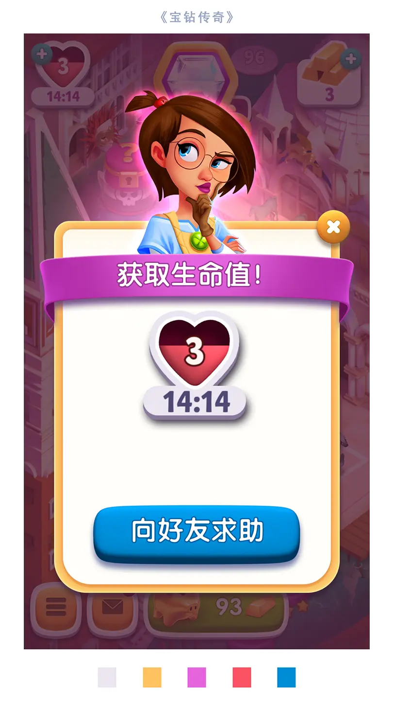 所以我想这和欧美本身文化及他们的天然性格有关,宏观的看一款游戏,他们更倾向简单直接的进行消除开始玩,游戏内部消除的体验爽感对于他们来说更重要,至于外围的界面弹窗设计概括来说就是简单明了,点到为止。简单不代表他们不严谨,只是重心放在了内部的消除元素。