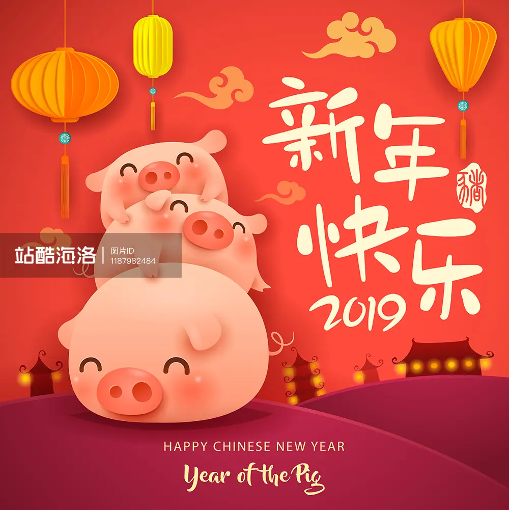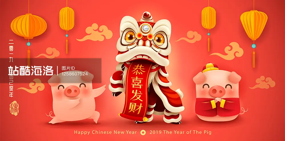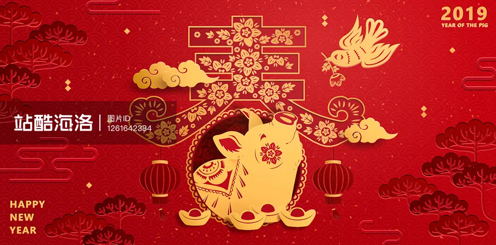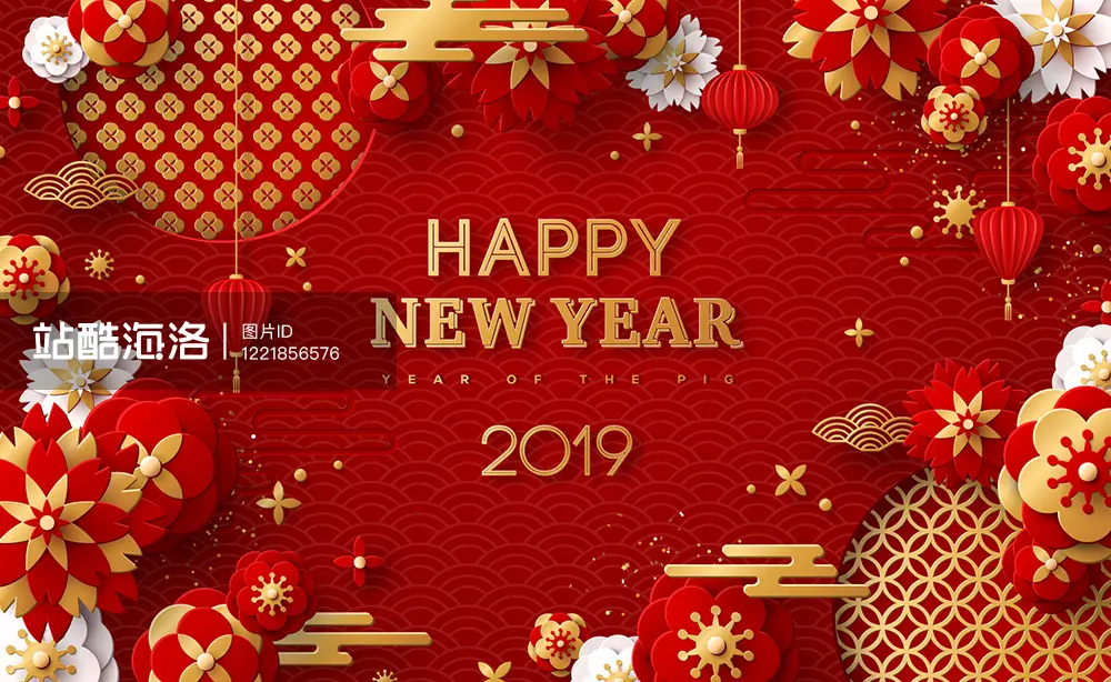 最后一张虽然文字依然停留在2019的新年,但胜在矢量图便于修改,可以随意添加适合自己的定制化内容,背景以传统图案为主,融合了立体化的设计,更有一种时尚的现代气息。