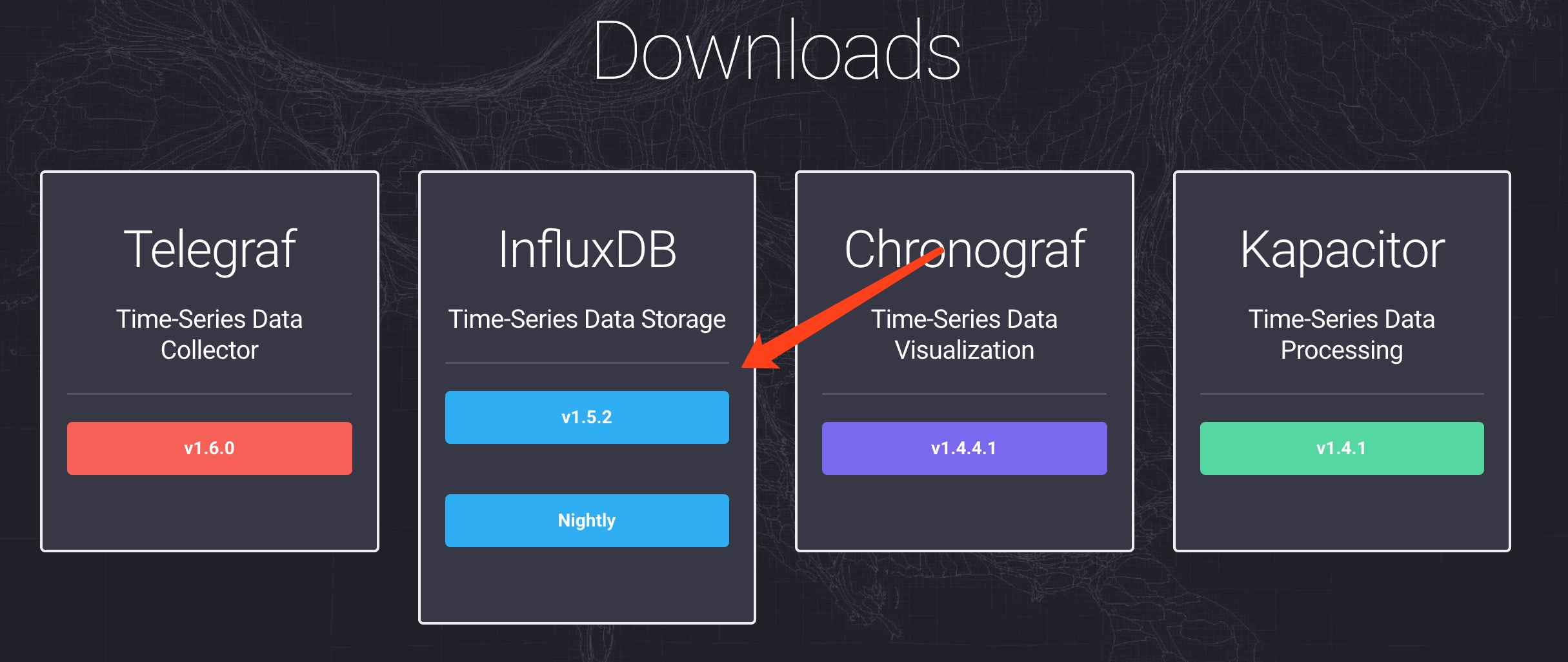 访问portal.influxdata.com/downloads , 点击InfluxDB