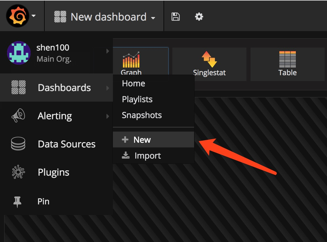 仪表盘(Dashboard),就是管理各种图表的地方。 仪表盘由 行(Row)+ 图表面板(Panel)组成。