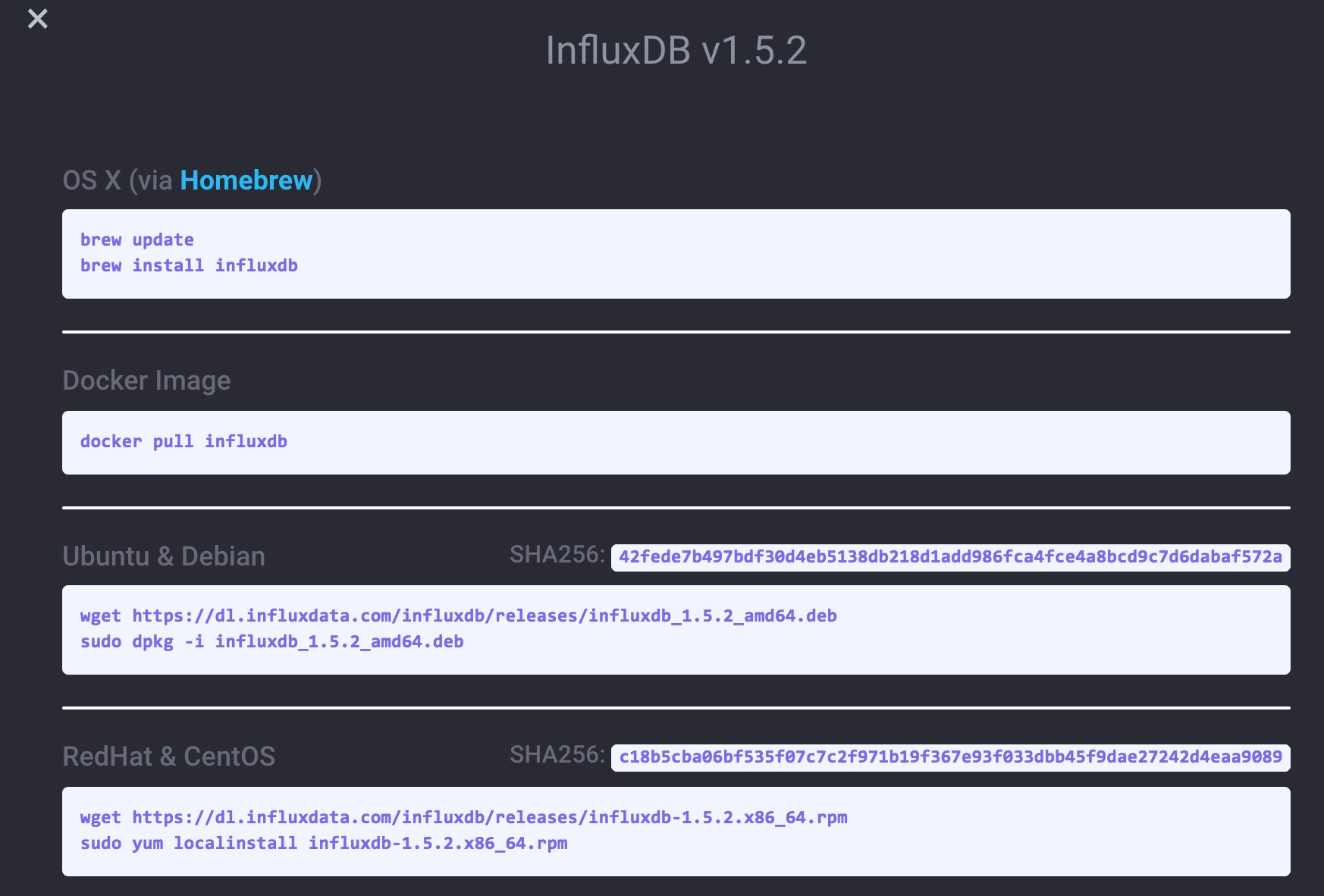 wget https://dl.influxdata.com/influxdb/releases/influxdb-1.5.2.x86_64.rpm