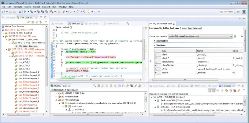 | Parasoft C/C++ Test | 静态分析和安全测试、单元和集成测试、运行时分析、代码覆盖率分析、具有可跟踪性 |
