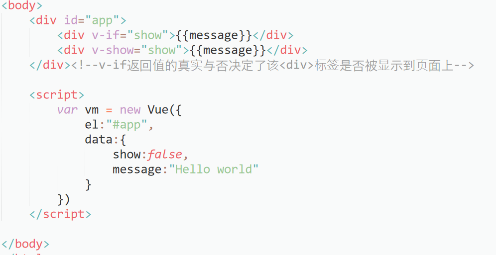 - v-if :对应的变量值为false,指令从DOM上移除
