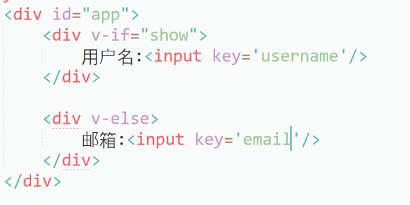 - key值:当我们给每个标签加上一个key值时,vue就不会去复用不同key值得内容