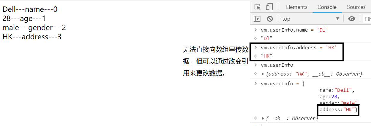 注: 改变对象的方法:改变引用,set方法