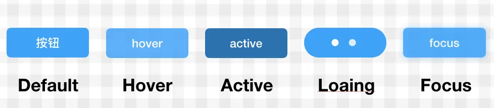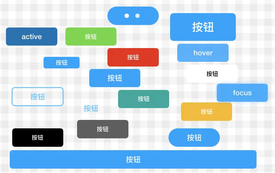 | 按钮状态 | 禁用 disabled, 鼠标移入 hover, 鼠标按下 active, 获取焦点 focus, 加载 loading |