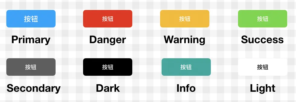 | 按钮主题 | 主按钮 primary, 次按钮 secondary, 成功按钮 success, 危险按钮 danger, 警告按钮 warning |