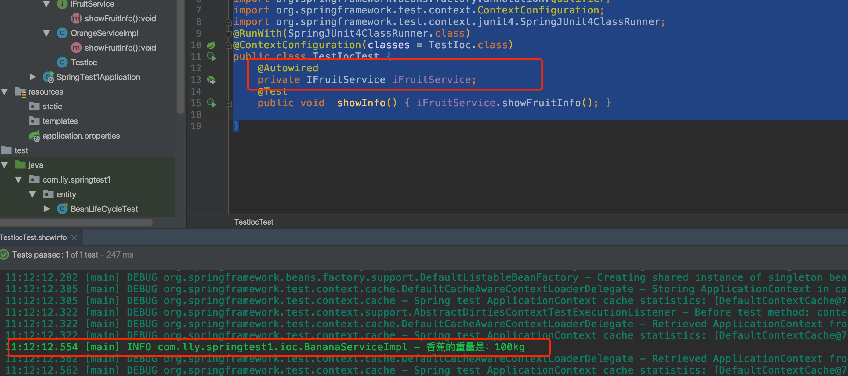 在上文中我们定义个一个IFruitService,orangeEntity 这个类实现了这个接口,我们在测试类中是直接注入的,那么我可以想想一下,在实际的开发中,可能存在一个接口对应多个实现类的情况,spring在帮我自动注入的时候是怎么帮我们选择的呢,下面我们来实验一下。