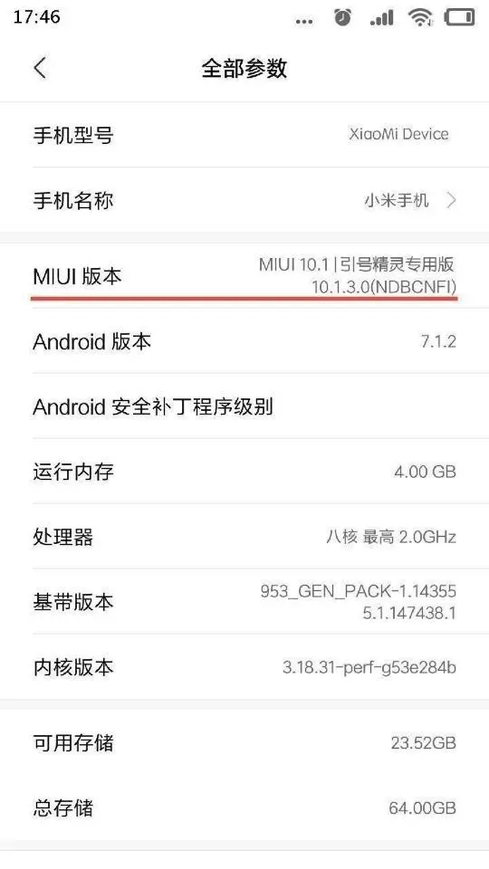 然后,进入到“全部参数”界面之后,连续点击“miui版本”一栏,直到看出弹出“您已进入开发者模式”的提示内容。
