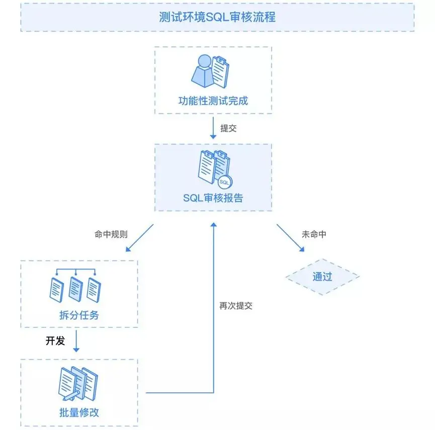 该场景主要在大型企业中遇到,实施以培训为主,配合开发规范文档及静态审核(合规性)。强制实施后,对开发源头的烂SQL有较好的控制,极大减轻了测试后需要大面积返工的风险。