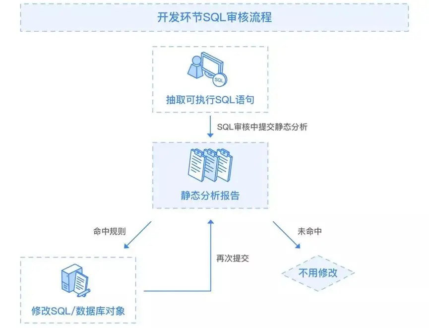 如静态审核报告中显示有问题,开发修改SQL文本后,再次生成静态审核报告,重复以上流程,直至无严重级别规则命中。