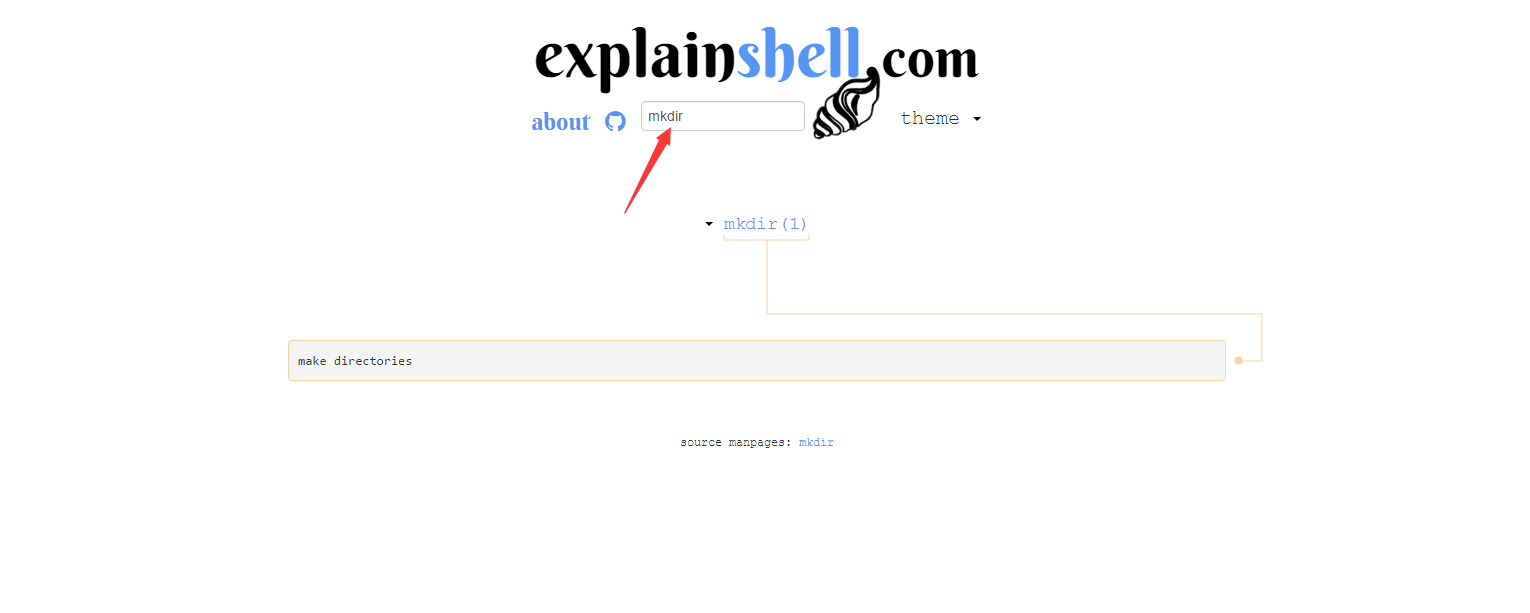 使用这个网站可以让您理解这些命令代表什么意思,当您在输入框输入命令简写时,它会显示这个简写命令的英文全称,从而加深你的理解和记忆。如下:当我输入mkdir后,他显示了make directories,意思是创建一个目录