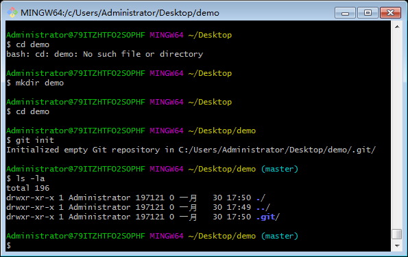 1.输入cd demo在桌面创建一个demo目录