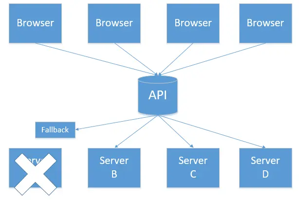 Hystrix 支持 降级回退 操作,当 发生熔断 或 出现错误 时,调用会执行 默认代码路径。
