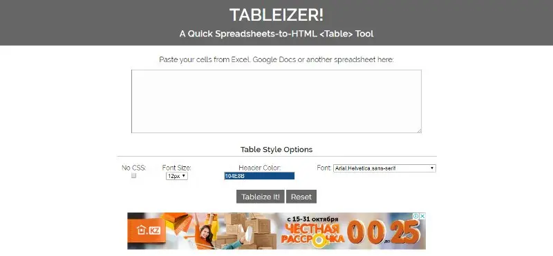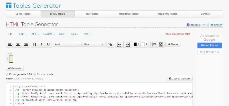This tool comes with a variety of generating options and creating great HTML tables is one of them.