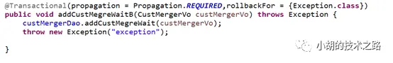 这个时候把参数unexpectedRollback置为false了,所以当addCustMegreWaitA()事务需要提交的时候