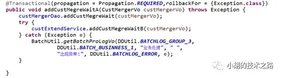 简单分析:addCustMegreWaitB()有事务,然后处理的时候有这么一句: