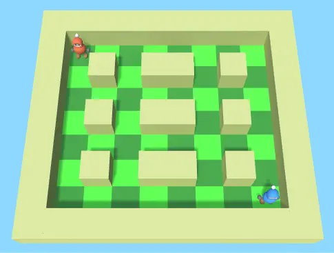 两个玩家都可以使用WASD键和方向键在地图上走动。