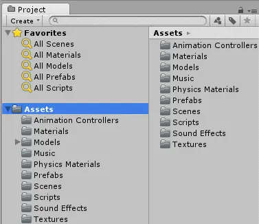 - Physics Materials:保存玩家的物理材料 - 这些是为表面添加物理属性的特殊材料。 在本教程中,它用于让玩家毫不费力地在水平上移动。