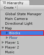 在层次结构视图中,选择Map容器对象内的Blocks GameObject。