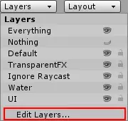 在Unity编辑器中,单击右上角的Layers按钮,然后选择Edit Layers…
