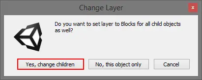 当Change Layer对话框出现时,单击Yes, change children按钮,以应用于分散在地图上的所有黄色块。