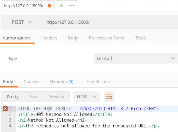 HTTP支持多种请求方法,默认情况下,路由只响应GET请求,如果不信可以自行用 PostMan对接口发起一个POST请求,结果如图所示: