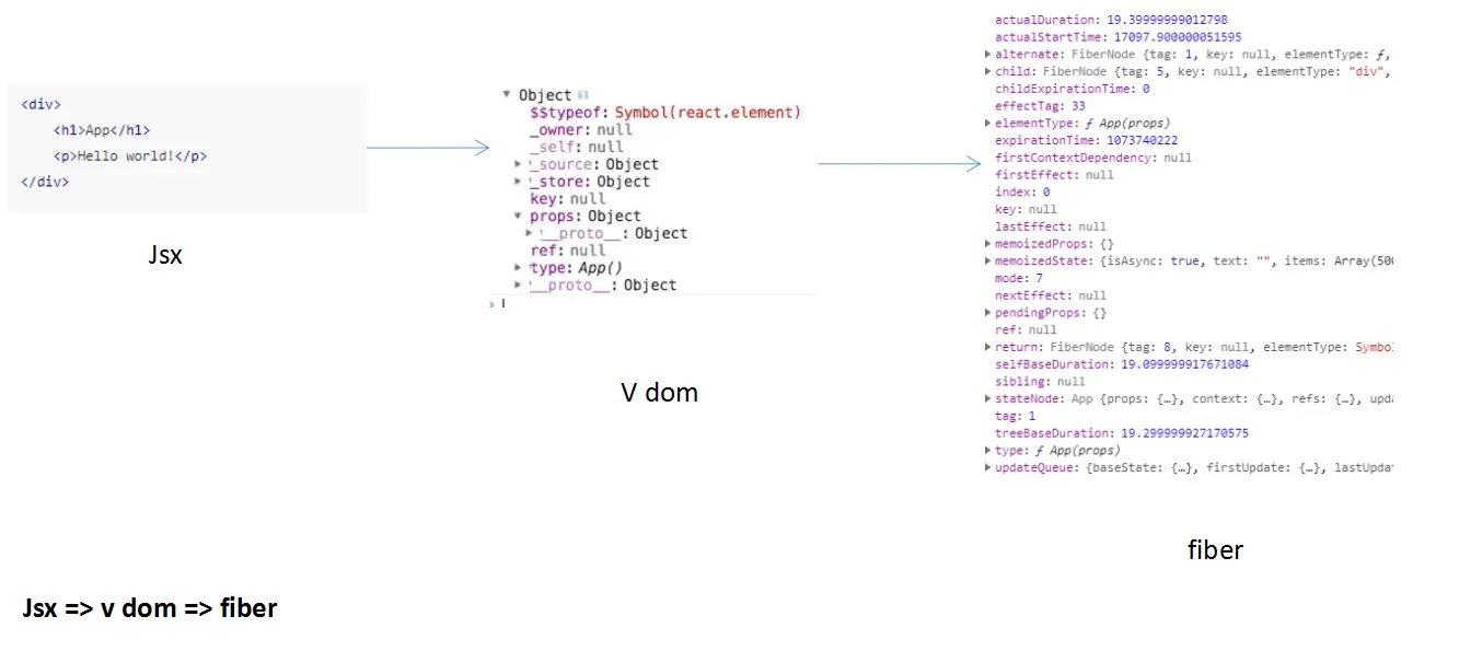 当然, 还要从标签转换成VDOM,再转成Fiber,才是一个真正的任务片,如图: