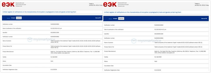 今年的新款 iPad 最快可能在 3 月份就要来了。根据印度媒体 MySmartPrice 报导,苹果本周在欧亚经济委员会(EEC)数据库中注册了 7 款尚未发布的全新 iPad 型号,包括 A2123,A2124,A2126,A2153,A2154,A2133 和 A2152。根据过往的经验,这很有可能就是苹果今年将发布的新产品,尤其是传言中的 iPad mini 5 和新 iPad 可能性更大,因为用欧亚经济委员会数据库出现的新型号来预测苹果新品的准确度实在太高啦。去年 2 月在欧亚经济委员会注册了两款型号分别为 A1893 和 A1954 的设备,后来我们都知道这就是一个月后发布的 iPad(第 6 代)。