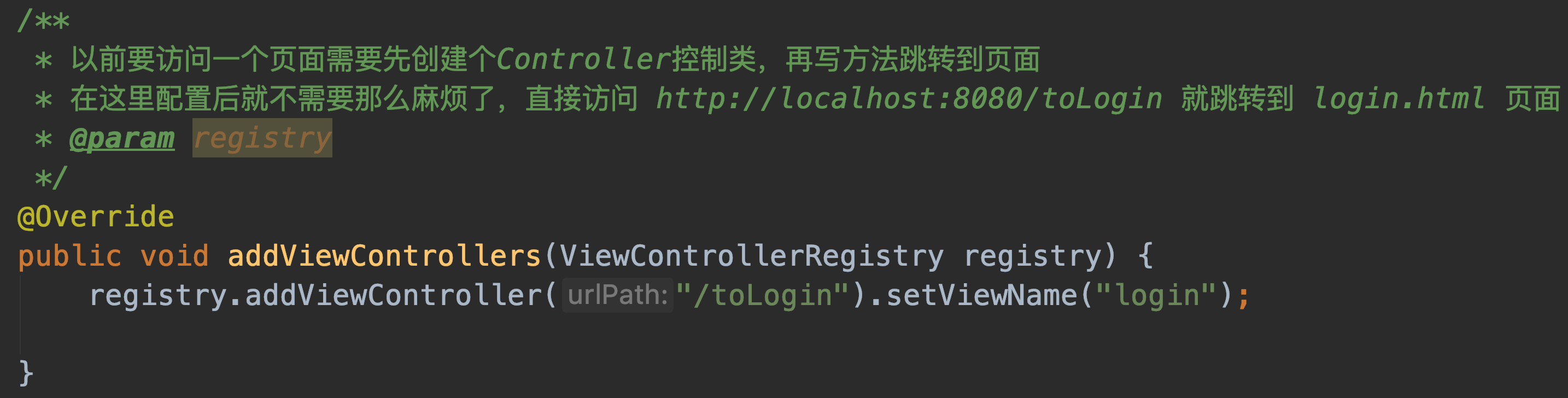 addViewControllers,并不会覆盖WebMvcAutoConfiguration中的addViewControllers(在此方法中,Spring Boot将“/”映射至index.html)这也就意味着我们自己的配置和Spring Boot的自动配置同时有效,这也是我们推荐添加自己的MVC配置的方式。