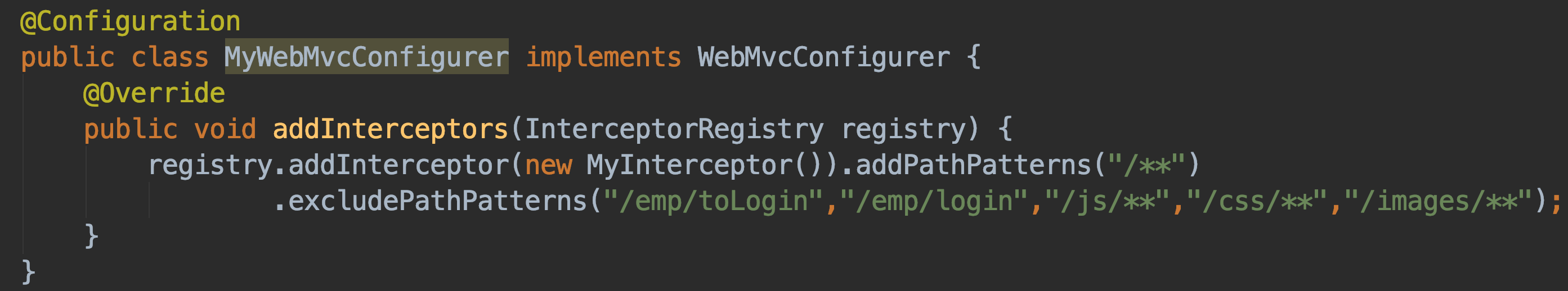 .excludePathPatterns("/index.html","/","/user/login","/static/**");