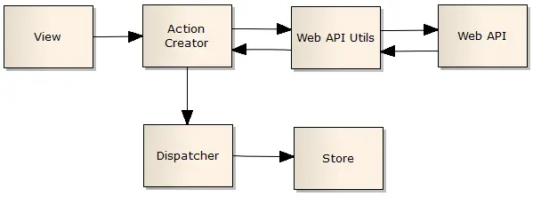 When doing Web API calls to update the user interface, the Web API call will be followed by an action to update the store. When the store is updated it will emit a change event and as result the view that listens for that event will re-render.