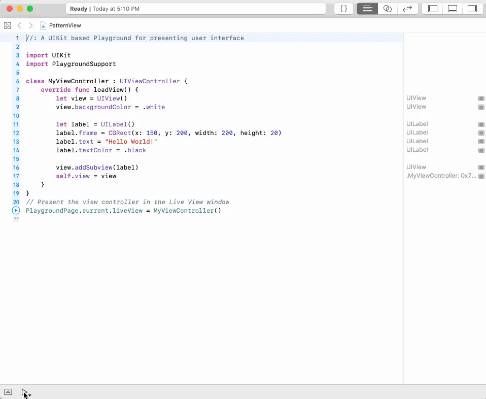 在PatternView.playground中的视图控制器类之前添加以下代码: