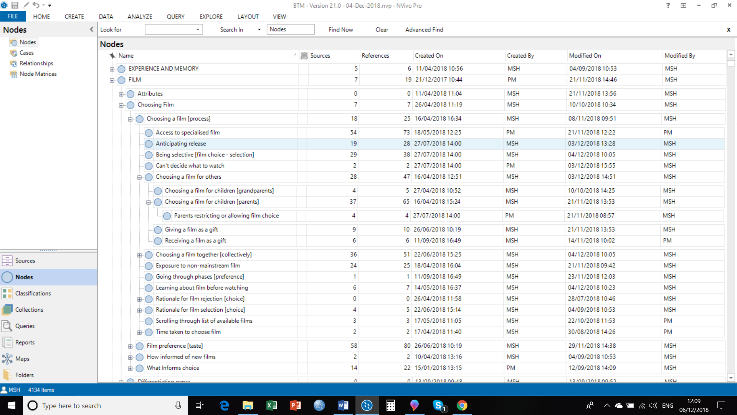 在我们的项目中,我们研究专业电影观众及其电影观察实践,将国家政策和行业实践联系起来。我们利用计算本体来整体探索项目中的数据,并查询所有数据类型,以通过调查数据与国家政策的比较来分析访谈时形成的概念发展的怎么样。为此,本体和对Nvivo关系类型的广泛使用为我们提供了一种方法,即可以将独立分析(单独的NVivo项目)中开发的概念汇总在一起,并探索它们如何相互关联。