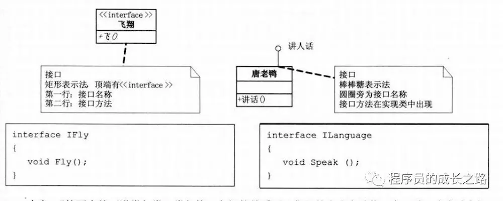 接口还有另一种表示方法,俗称棒棒糖表示法,就是唐老鸭类实现了“讲人话”的接口。