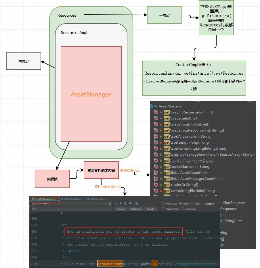 Method addAssetPath = assetManager.getClass().getMethod("addAssetPath", String.class);//为什么要反射执行这个方法?因为它是hide的,不直接对外开放,只能反射调用
