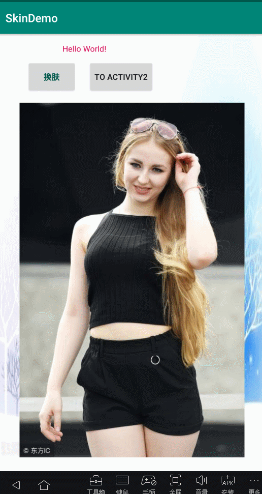 Activity1,点击换肤,可直接更换界面上的background,图片的src,还有textView的textColor,跳转Activity2之后的textView颜色,在我换肤之前,和换肤之后,是不同的。换肤的过程我并没有启动另外的Activity,界面也没有闪烁。我在Activity1里面换肤,直接影响了Activity2的textView字体颜色。