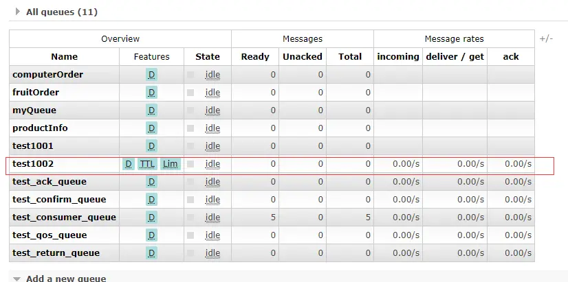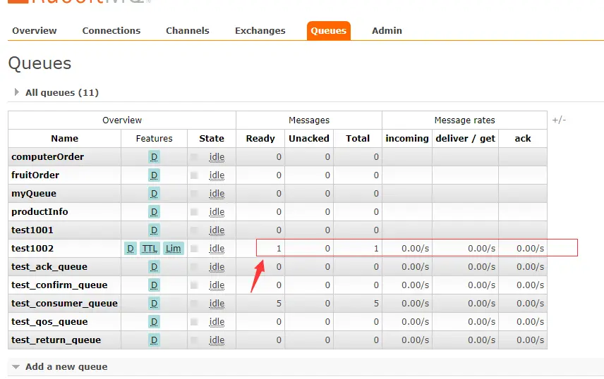 这里就直接在管控台演示就行了,先创建一个队列 test1002
