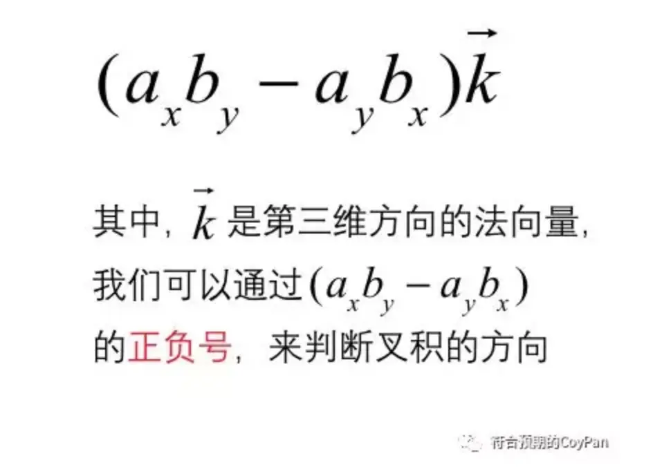 2、向量的叉积正负值可以确定旋转方向。