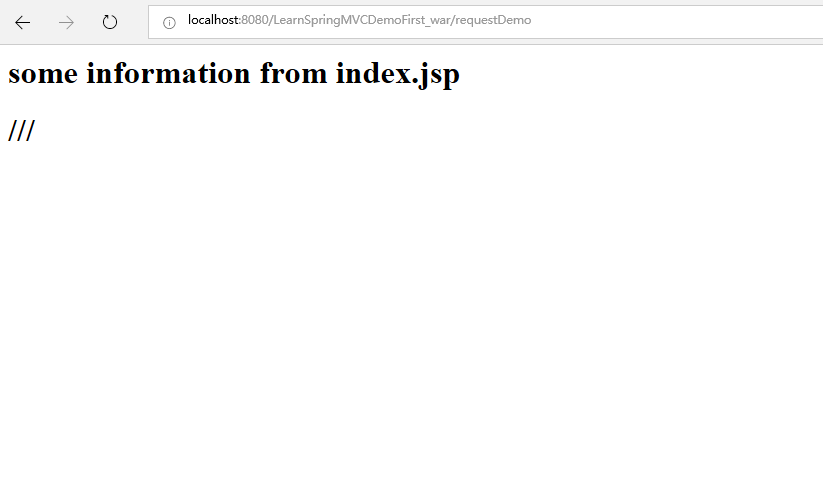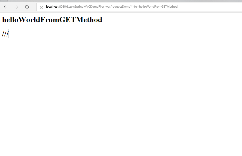 GET方法请求这个页面: 访问地址 http://localhost:8080/LearnSpringMVCDemoFirst_war/requestDemo?info=helloWorldFromGETMethod